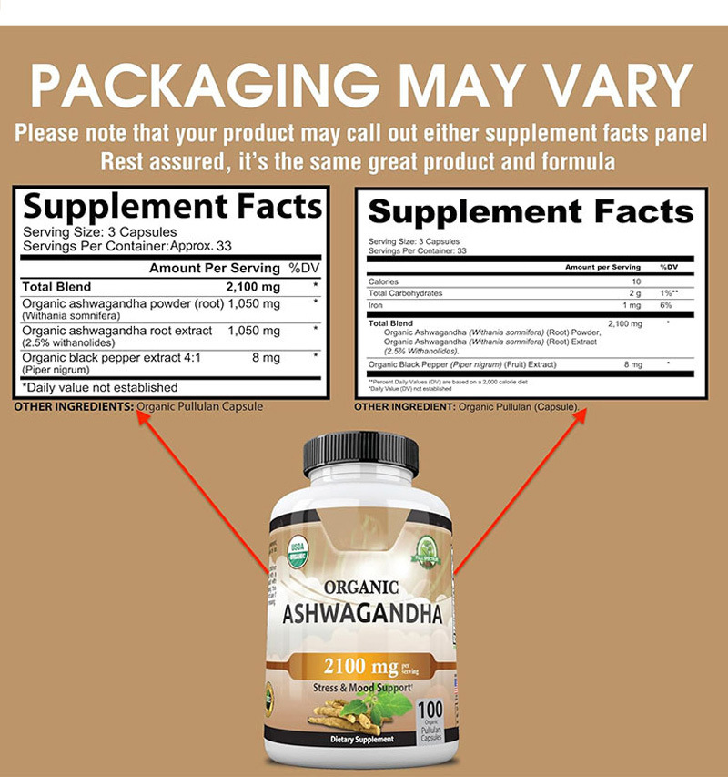 Organic Ashwagandha 2,100mg Organic Ashwagandha Capsules